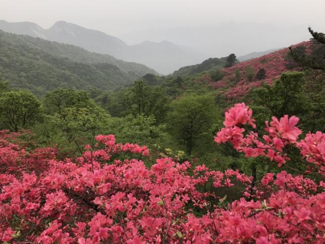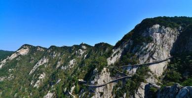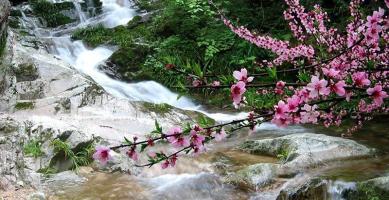 红安天台山风景区,位于鄂豫之交的“中国第一将军县”——红安县境内,属国家级森林公园、国家AAAA旅游景区、国家地质公园、湖北省级风景名胜区,面积120平方公里,距武汉市110公里,有武麻高速相通。天台山区由天台山、鲫鱼岭、九焰山、绕拨顶、黄茅尖、平头岭、五峰尖、鹅公岭等大山组成。景区由主峰、九焰山古兵寨、爱河风情谷、对天河漂流区、香山湖、天台镇六大景区组成,景区内风景幽雅,五岑六谷,松柏常青。每当春夏之交,映山红、兰花漫山遍野,馨香袭人;金秋时节,金菊红枫,争奇斗艳。