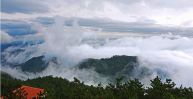 天堂寨,国家AAAAA级旅游景区、国家级自然保护区、国家森林公园、国家地质公园,是大别山第二高峰,由十一届全国人大常委会委员长吴邦国先生题字。位于安徽省金寨县与湖北省罗田县交界的地区,有“华东最后一片原始森林、植物的王国、花的海洋”的美称。天堂寨所处的大别山,是中国南北水系的分水岭,山北水往北流注入淮河,山南水往南流注入长江。所以在天堂寨峰顶北可望中原,南可眺荆楚,巍巍群山尽收眼底。海拔1729米的天堂顶有一口天塘,塘水不溢不涸,俗称“瑶池”。