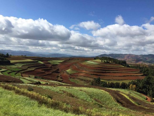 在云贵高原,山谷沟壑之间,有一片绚烂的红土地,赤、橙、红、绿、青、蓝、紫,犹如彩虹一般,艳丽到极致,连上帝也不禁手抖,将调色盘遗留在了这里。