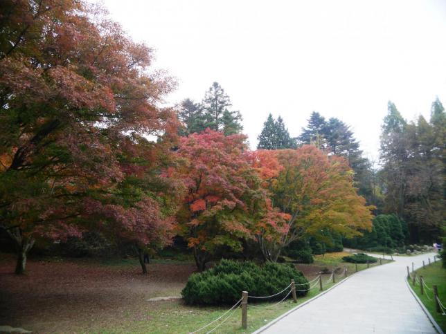 一年四季不变的绿色是所有色彩的背景底色,它们由松树、柏树、青冈树等常绿树种组成,而其它色彩则多由枫树、桦树、黄金树、山樱桃等众多植物泼写。因此,与其说米亚罗的秋天是红叶的天地,还不如说是彩林的世界。