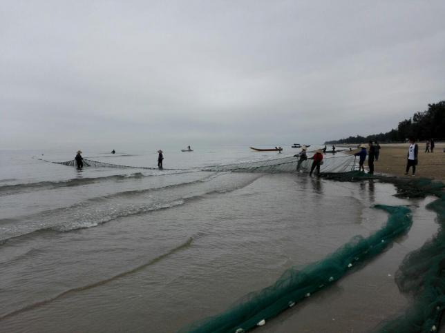 而在万尾岛上,最有趣的莫过于赶海,当地渔民经常在礁石上橇生蚝,金族妇女在沙滩上翻沙虫,还能在万尾农贸市场买好食材加工,来一顿海鲜盛宴。其在华南夏末秋初的10月,到京岛,更可以看到京族人踩着高跷,张着网帐去海滩捞虾的景象!