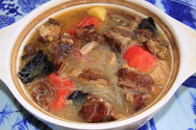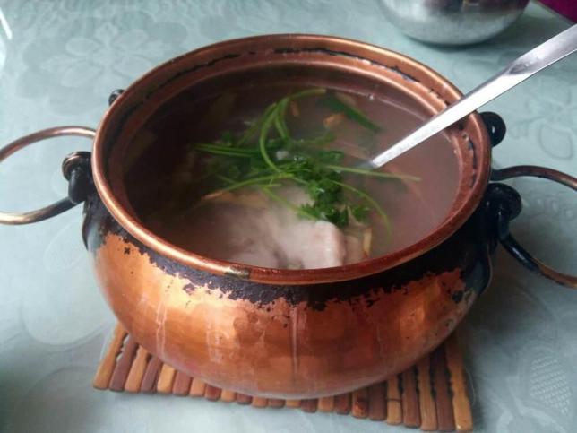 丽江,不用说,腊排骨火锅,锅是铜制,流行于川南滇北一带,外形和北京涮羊肉锅子一样,吃腊排骨时,最好来一份面粉做的粑粑,极具嚼头。