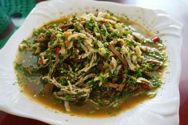 到了瑞丽,一定要品尝牛撒苤,这是傣族传统民族小吃。顺便来一杯泡鲁达,这个美味是傣味里的一种饮料,用西米露、炼乳、特制面包干、新鲜椰丝加上冰块和水做成,香甜扑鼻。而在大理,则是巍山(火巴)肉饵丝,生皮(生猪肉),后者极具挑战,当地人视之为极品美味,但是对外地人来说,要把生肉吃下去,还需磨练。