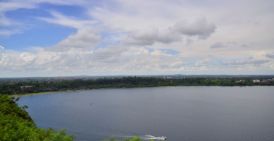 湖光岩风景区位于广东省湛江市区西南部18公里,总面积为38平方公里,被联合国地质专家称为研究地球与地质科学的“天然年鉴”。园区是一个以玛珥火山地质地貌为主体,兼有海岸地貌、构造地质地貌等多种地质遗迹,自然生态良好的公园。景区是由雷琼世界地质公园博物馆、楞严寺、李纲醉月雕像、美食欢乐园、清风林、火山地质遗迹、高密度负离子区、董公亭、玛珥湖、陈济棠将军墓、白牛仙女雕像等20个景点组成,是集自然景观与人文景观于一身的旅游区。湖光岩风景区是国家级风景名胜区、国家地质公园、国家AAAA级旅游景区和全国青少年科普教育基地,居湛江八景之首。