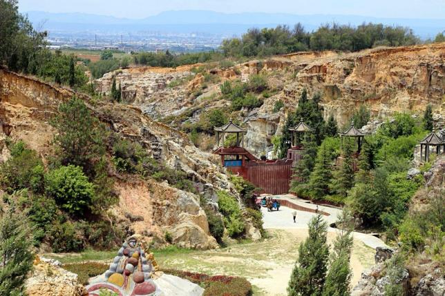 由石林前往陆良彩色沙林,无需绕道陆良县城,两景点间相距60公里,行车1小时。景区内的沙子,因矿物含量不同呈现出不同的颜色,加上气候、日照、角度等原因,视觉效果非常有层次。与石林、土林合称为“云南三林”。