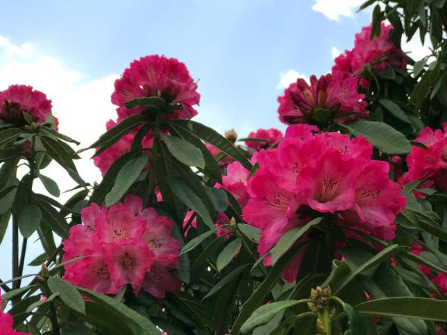 鲜红如滴映霞明,火热媚丽数杜鹃”,春深初夏时节,黑龙潭公园杜鹃谷漫山红遍,姹紫嫣红,600多盆毛鹃、3000盆西洋杜鹃和马缨花等盆栽杜鹃沿主游路摆放,让市民一进公园就置身姹紫嫣红的杜鹃花海。
