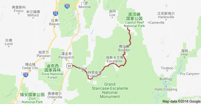 美国犹他州12号公路全长200公里, 基本上处于大阶梯地貌( Grand Staircase )与迪克西(Dixie)森林二者交接地带,被誉为美国沿途风景变化多端、地理景观奇幻无穷的一条路。