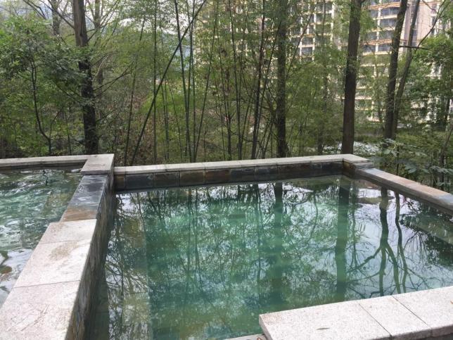 欧式的建筑颜色比较鲜艳,在冬季,相对于远处萧条的山色,总是给人暖暖的感觉。像冬日的一束阳光。天赐温泉水,更惹人留连;一池清碧平如镜,几多小塘点星罗;涟漪晃动人影,药浴异香扑鼻…劝君来倾情享受,莫留下平生遗憾。