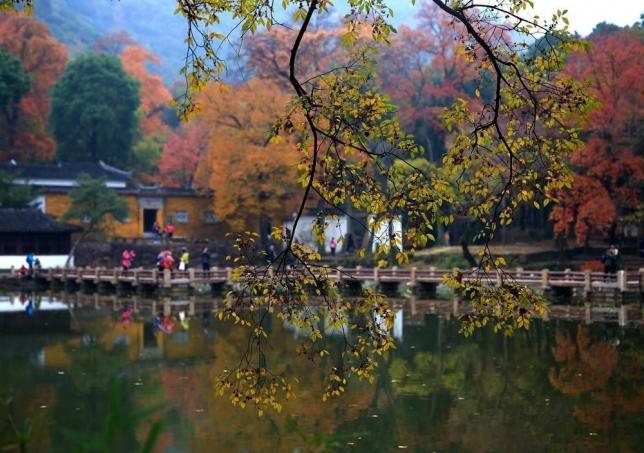乾隆下江南四游天平山而演绎出了深秋赏枫的人文习俗,古枫吐艳与江南园林融为一体,别致盎然。这里的枫叶入秋经低温霜打后,叶色逐渐由青变黄、转橙、呈红、泛紫,往往一棵树上就五色并存,是名副其实的“五彩枫”。半山腰的望枫台是最佳赏枫点。