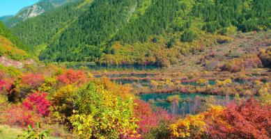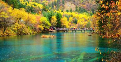 九寨沟地处四川阿坝藏族羌族自治州九寨沟县漳扎镇,由三条沟组成,景点都分布在其中。这里冬无严寒,夏季凉爽,四季景色各异,以翠湖、叠瀑、彩林、雪峰、藏情、蓝冰“六绝”着称于世。着名的景点有:树正群海、诺日朗瀑布、五花海、犀牛海、五彩池、珍珠滩等等。一年四季无论何时去,你都会仿佛置身于仙境之中。