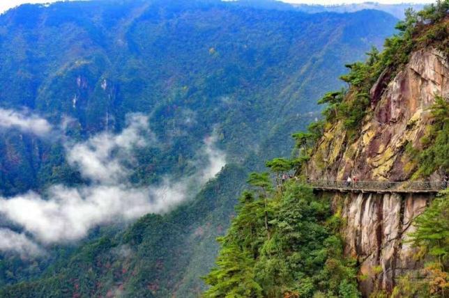 而勤劳的人民更造就了近2000亩高山梯田景观。临近的乌溪江清澈婉约,还有古朴的明代古寨没有喧嚣,只有宁静。这里还有华东最长的高空玻璃桥,超适合出大片哦~一年四季美景不重样!
