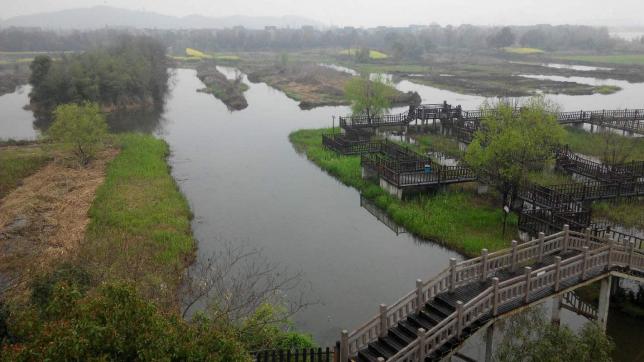 下渚湖位于浙江德清县城东南,是国家四A级景区,江南最大的天然湿地。下渚湖的神奇在于湖面或开阔如漾,水天一色,被人民日报社评为“中国最美湿地”。这里河网纵横,湖沼密布,湖面平静得像一面明镜。一阵微风吹过,微波荡漾,泛起朵朵涟漪。