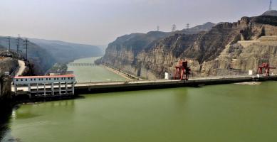 黄河在晋陕峡谷段,总体流向为由北向南,自辛关黄河大桥以南6公里处,陡然向东,转了一道极为奇特的大弯,这便是天下黄河第一弯。