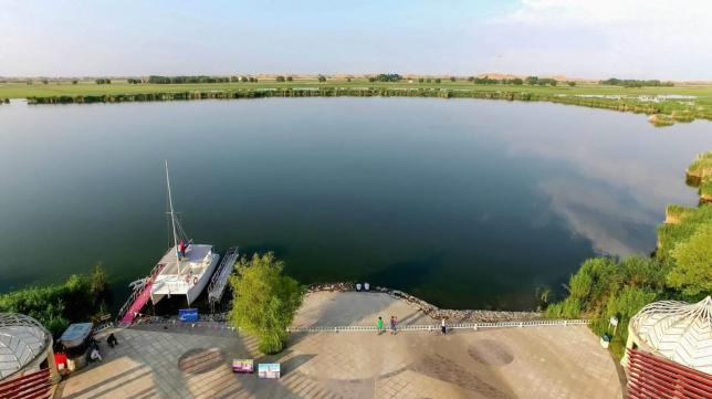 七星湖沙漠旅游区,位于鄂尔多斯市杭锦旗境内的库布齐沙漠腹地,是浩瀚沙漠中的一汪清水。七星湖由七个湖泊组成,其中的扎汉道图、东大道图、大道图三海统称道图海,这里好似三颗明珠并列镶嵌在苍茫的库布齐沙漠之中,水质清澈,水草茂盛,周围被沙山环抱,十分神奇。旅游区内给游客呈现了最为自然本质的景色,这里没有过多的娱乐设施,完整的保存了沙海、沙山、湖泊等自然景观。游客这里可以尽情享受大自然所带来的惬意,可以带着孩子来,和孩子一起爬爬沙山,在湖边散步,或者在黎明和傍晚时在湖边观赏沙漠中的日出和日落。 七星湖中还栖息了多种鸟类,其中有国家一级保护鸟类遗欧鸥几千只,游客还有机会在这观赏到白天鹅。