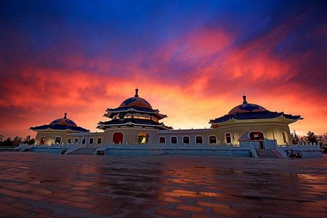 成吉思汗陵坐落在内蒙鄂尔多斯市伊金霍洛旗甘德利草原上,距东胜区70公里。 蒙古族盛行“密葬”,所以真正的成吉思汗陵究竟在何处始终是个谜。现今的成吉思汗陵乃是一座衣冠冢,它经过多次迁移,直到1954年才由湟中县的塔尔寺迁回故地伊金霍洛旗,北距包头市185公里,这里绿草如茵,一派草原特有的壮丽景色。