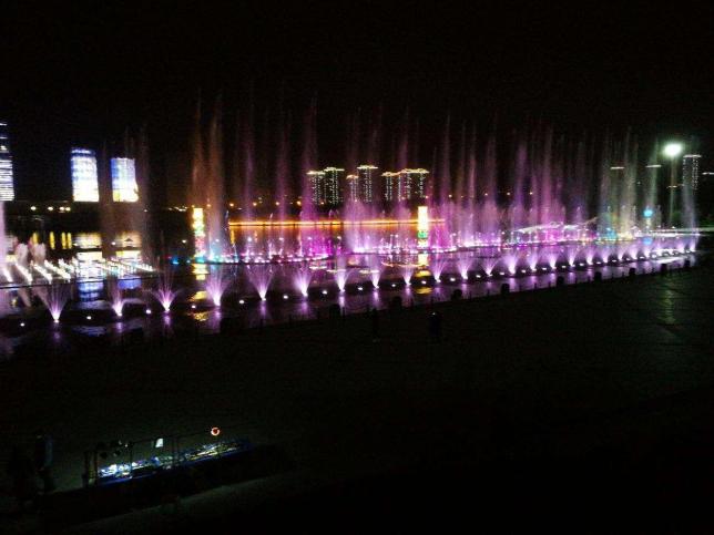 康巴什喷泉集世界第一大规模音乐喷泉,最高喷高可达209米,世界第一激光、水幕投影音乐喷泉。 世界第一瀑布喷泉和世界第一大规模广场音乐喷泉等诸多世界级第一于一身,创造了喷泉建造史上的多个奇迹。在亚洲艺术节开幕式上,该音乐喷泉作为第一献礼节目奉献。