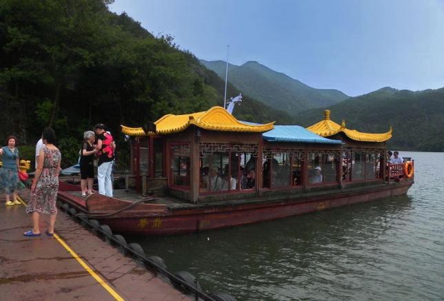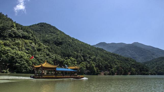 严子陵钓台位于桐庐县城南的富春江山麓,因东汉严子陵隐居于此得名。听说那儿的风景优美极了,但是先要欣赏到美景之前可是要费一番“周折”,原来下车点并不是我们所要到的钓台,要真正的到达钓台,首先要先坐船,一听要坐船,我的兴致便来了,因为这可是我第一次坐船呢!