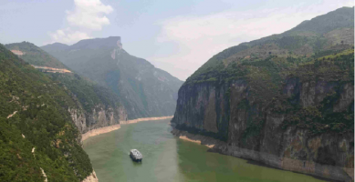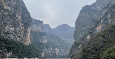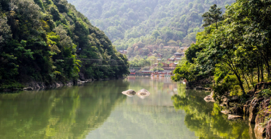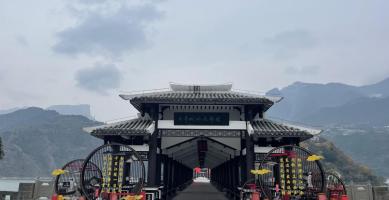 重庆市巫山县大昌古镇地处长江以北,大宁河中游、小三峡风景区。从巫溪县城出发,坐船沿大宁河下行两个多小时,新小三峡旅游的终点,依山傍水、绿荫掩映、青墙黛瓦的地方就是大昌古城。大古镇建在大宁河畔,占地约10公顷,现名为“解放街”的街道呈“T”字形,串通东、西、南3座城门,东西街长350米,南北街长200米。人们形容古城四面可通话,一灯照全城的袖珍古城。镇内建筑属砖木结构,大多为四合井院,青砖黛瓦、雕梁画栋,翘角飞檐、古朴幽雅,具有浓郁的江浙风格。