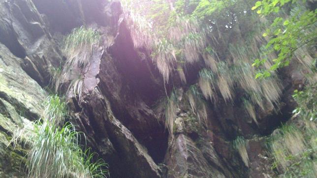每当降雨增多,这里便显现出飞瀑竟流的景象,溪水哗哗不断,悬崖峭壁上常有泉水飞奔而下,有百余条之多,久而久之便有了千瀑沟的名称。
