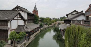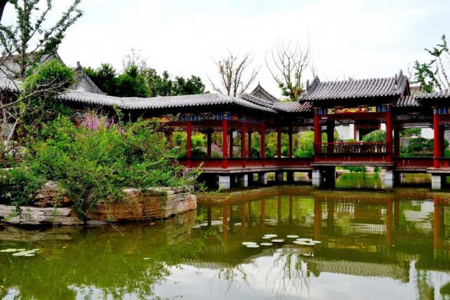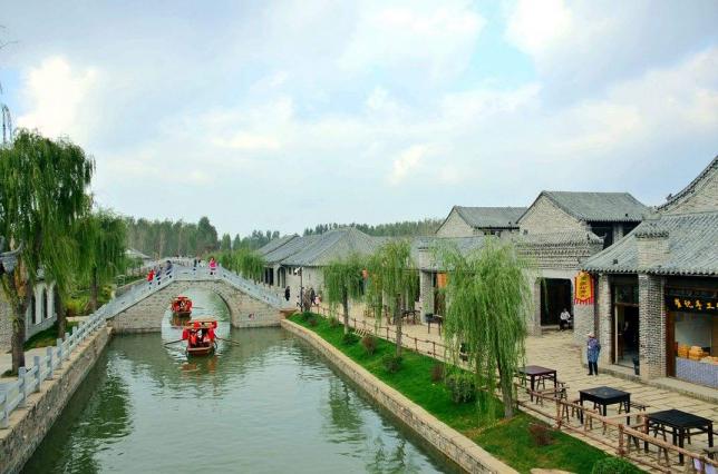青州古城以万年桥为中心,按照《清明上河图》中的内容和建筑风格,恢复历史上的虹桥、表海亭、归来堂、商业店铺、风俗表演等场所,充分展示宋朝辉煌的文化和民风习俗。
