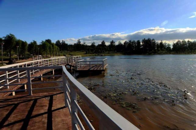 民丰湖位于东营市垦利县城东部,主要有湖心岛、新月广场、三元广场、九曲长桥、亲水平台、景观桥等景点。