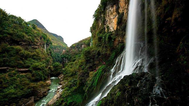 马岭河被称为“地球上最美丽的伤痕”。湍急的河水与地下暗河合力把地表撕开一条裂缝带,熔岩坍塌暗河变成了今天的“天沟地缝”,这就是贵州的马岭河。
