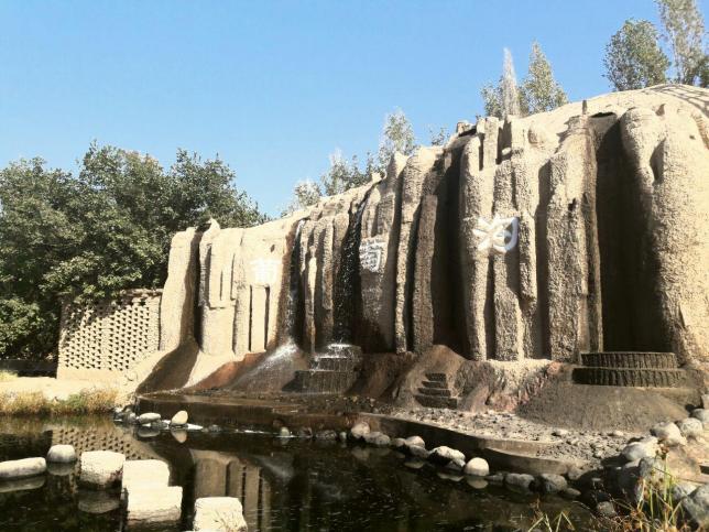 火洲闻名遐尔的“清凉世界”-----葡萄沟,位于吐鲁番市东北13千米的火焰山峡谷中。该沟是一条不太深的切蚀沟,南北长8千米,东西宽约0.5千米,最宽处方可达2千米,一条小溪流贯其间,沟侧沿隙中时有汩汩泉水渗出。