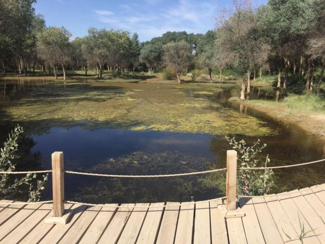 泽普金湖杨国家森林公园座落在泽普县西南40公里处的亚斯墩林场境内,镶嵌在叶尔羌河冲击扇上缘,三面环水,景色宜人。风景区内天然胡杨林面积广达1.8万亩,春天百鸟欢歌,生机盎然;夏季浓荫蔽日,杂花生树;入秋黄叶如染,如诗如画;冬日银装素裹,满目苍劲。