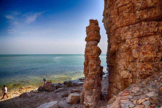 位于山东烟台南长山岛的脚下,在南长山岛的脚下,有一礁石迎风而立,形状像一妇女头戴围巾,怀抱婴儿,状似遥望出海打鱼的夫婿,人称此礁为“望夫礁”。