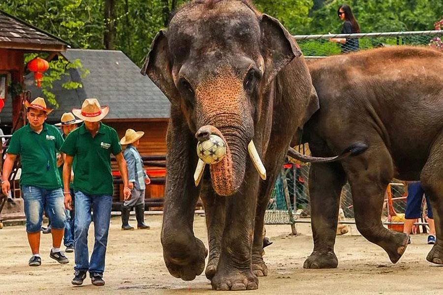 野象谷里也有已经被驯服的大象,成立的“大象学校”专门为游客表演节目。