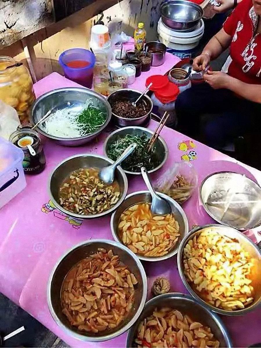 凉拌是当地人最喜爱的手法,例如米线,米干,凉面,凉粉,木瓜,芒果等,利用当地人民种植的各式各样作料混合拌制而成,味道酸辣带甜,再加上自制酱料,形成一道美味的民间食品,说真的,小编口水都流出来了。