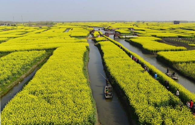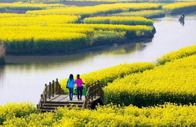 每年清明时节,千垛景区四面环水的“垛田”上长满了金黄色的油菜花。一幅“油菜花开金满地”的壮阔美景,的确是很迷人。“河有万湾多碧水,田无一垛不黄花”正是兴化垛田菜花的真实写照。在《舌尖上的中国》中,垛田出产的“兴化龙香芋”一举成名,芋头烧肉、蟹黄豆腐等水乡特色美食令人食指大动。