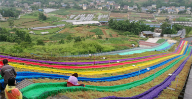 藏在深山的世外桃源是一座晃晃悠悠的索桥,连着黛瓦白墙的人家,褚红的吊脚楼掩藏在绿荫里,木栏窗上挂满了金黄的玉米棒子、火红的辣椒串,村子四周青山环抱,碧水潺潺的青竹江绕村而过,阡陌交通上往来的着耕作的农人,小扣柴扉处偶尔传出一两声鸡鸣狗吠,这里,仿佛陶渊明笔下的世外桃源,这就是阴平村。