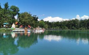 长白山国际度假旅游区,有2个美丽的人工湖,其中一个取名“比牙”,来源于月神比牙。 另一个湖,取名为“佛库伦湖”。 旅游小镇位于长白山国际旅游度假区的中心,由滑雪服务中心、大剧院、商业街、娱乐中心、温泉洗浴中心、公寓式酒店及人工湖等设施组成。通过借鉴欧美滑雪小镇的形式,充分体现了国际级旅游度假区的高端品质。