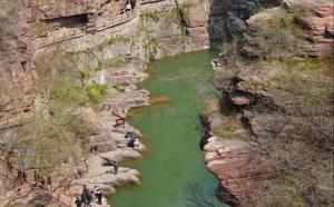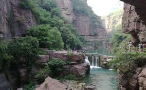 红石峡是云台山风景区的标志性区域,也是风景区内最精华的区域。红石峡有“盆景峡谷”之称,当你步入谷中的栈道,红色的山石扑面而来,这里属于丹霞地貌,岩石都是红色的,“红石峡”因此得名。这里既有北方山川的雄浑,又有江南水乡的秀丽,在谷中的栈道中漫步时,抬头仰望,可以看到两边峭壁林立,犬牙交错。谷内树木郁郁葱葱,还能看到众多的飞瀑溪水,耳边可以听到涛涛水声,宛如是江南的秀水青山。