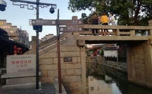 送子来凤桥位于西塘风景区小桐街东侧,当地人也叫它“晴雨桥”。至今仍流传着“凡新婚情侣过此桥,南则送子,北则来凤”的说法,想要得子的夫妻不妨来走上一走,讨个好兆头。它连接烟雨长廊,处在古镇游览的核心位置,是西塘众多古桥中游人必到的一座。这是一座三孔石板桥,宽约10米,桥顶有棚可以遮阳避雨,两侧有护栏和长条石凳,走累了可以在这儿小憩一下,看景拍照都很不错。尤为值得一提的是,桥中间的花墙将整座桥分为南北两边。南边是阶梯,寓意男子步步高升;北边是斜坡,适合古代女子三寸金莲迈小步,寓意持家稳当。