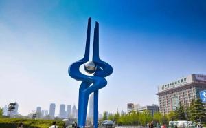 泉城是济南的别名,整个广场的设计紧扣“泉”这一主题,南北两侧是狭长的绿化带,正中间坐落着泉标,蓝色高耸的钢制雕塑和中间的铁珠构成了篆书“泉”字的造型,你可以合影留念。