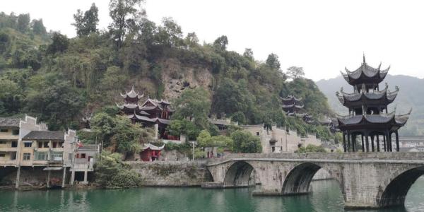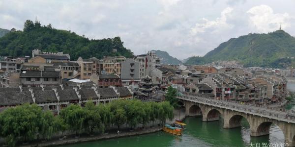 前往镇远古镇,镇远古镇是贵州省黔东南苗族侗族自治州镇远县名镇,位于舞阳河畔,四周皆山。河水蜿蜒,以“S”形穿城而过,北岸为旧府城,南岸为旧卫城,远观颇似太极图。
