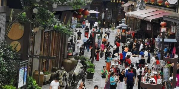 街右边是丹笼鸟笼小院,展示卡拉村鸟笼400多年的历史和发展,以及各种形态的鸟笼,游客朋友可参观和体验鸟笼的制作工艺和体验鸟笼非遗文化。