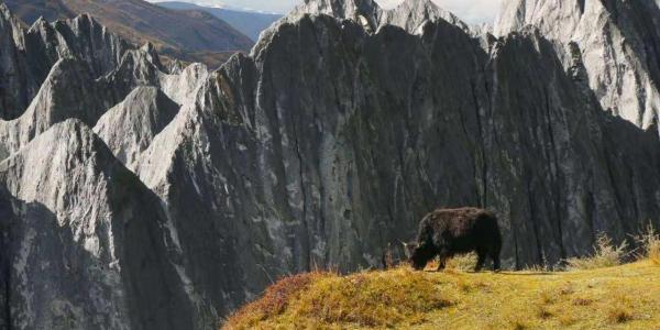 巴郎山藏语叫巴郎拉,意为怪柳山,海拔约5040米。这里沿途高山草甸,风光无限,举目远眺,峰峦重叠,犹如一幅幅巨大的地毯覆盖山间,成群的牛羊怡然自得。蓝天白云间,茫茫的云海漂浮在山腰处,将雄浑的山脉分成上下两部分,上面是野花缤纷的高山草甸,下面是神秘幽深的原始森林。