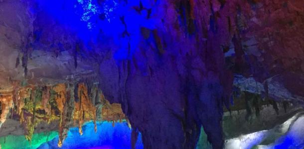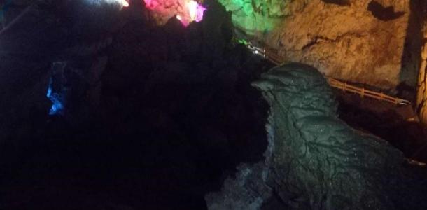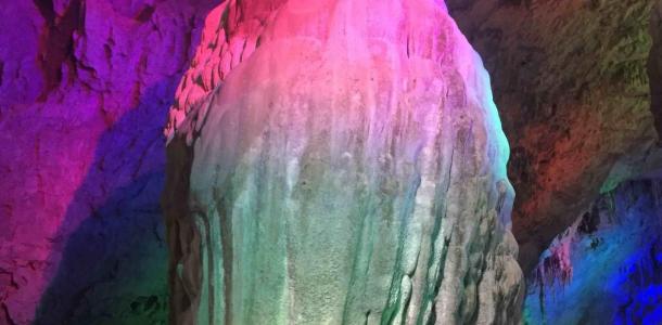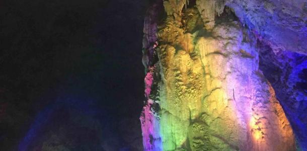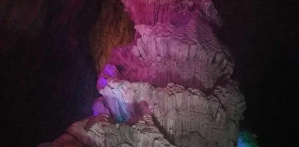 百魔洞是穿过天坑进入后洞,后洞的钟乳石在彩色灯光的照耀下更为壮观。二、三楼的钟乳石有的象瑰丽多姿的皇帝宫殿、谜魂宫,有的象航行在海上的帆船有舸争发,有的象神仙……总之这个洞里的钟乳石多姿多彩、形态各异,让人充满了想象!