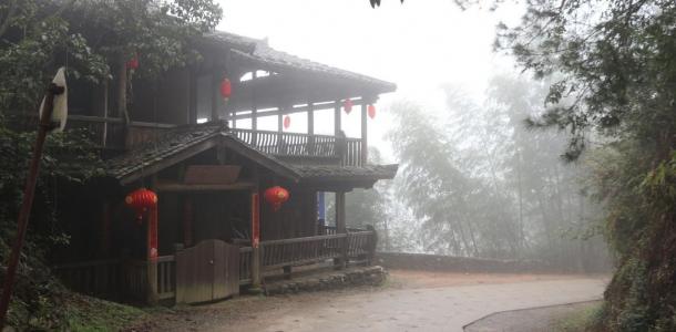 丁屋岭,一个寨门,一个无蚊叮咬的丁氏村落,一座宗祠和对面戏台,有一条不长的,叫牛气街的巷道和一个不高的了望吊脚木屋,这个可以拍戏也可以入戏的地方,有一种心情,含着雾气和樟本香,清新凉爽,纯朴无穷。