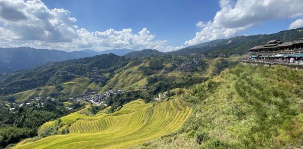 明仕田园是和竹筏漂流一起的。 我们先在庄园隔壁的饭店吃饭,一览美景,然后是竹筏漂流,观赏堪比漓江的美景还有导游在船上讲解。上岸后是明仕庄园,是花千骨的取景地,景色也很漂亮。全程两小时左右,凝聚广西的精华景色,很值得一游。