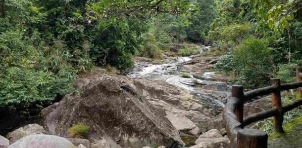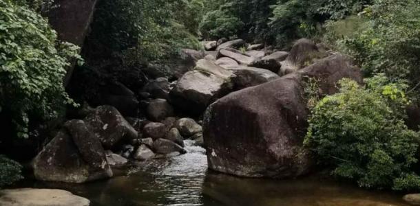 屏峰雨林是国家AAAA级景区,位于东兴市马路镇平丰村,水中的溪流从海拔900多米的罗华山蜿蜒跌宕而来,谷床全是洁净的花岗岩,千年流水冲刷,石头裸露了原色,殷红如血。建议穿运动鞋,防滑鞋,带瓶花露水。