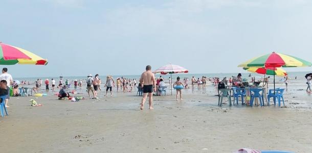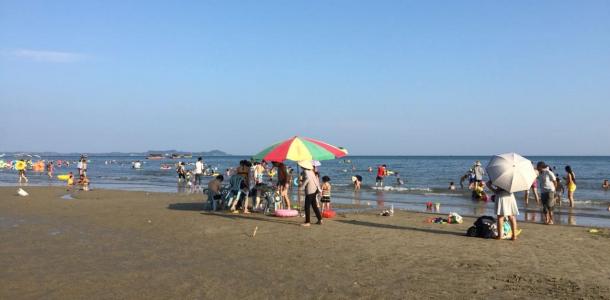 金滩非常适合开车去,从东兴市开车过去40多分钟,好像也有公交车。沙滩附近吃喝泳具全都有卖的,价格不清楚,我们都是自带的泳具,租伞100元。更换衣服加淋浴5元。海滩是黄色的沙子,超级细。退潮的时候还在沙滩上捡到了很多小螃蟹。