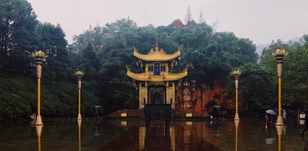 峨眉山报国寺也是一道很美的风景,瀑布虽小,但也是很耐看的,还有一些以往神话传说的浮雕,活灵活现,刻得是栩栩如生。而整座山的空气都很好。寺外有一个博物馆和亭子,还有一大片空场。没有进去,只是在外面转了转