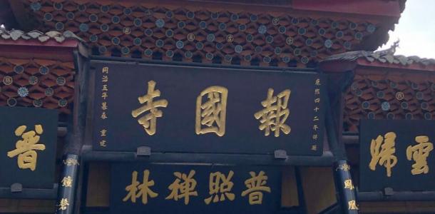 峨眉山上古寺众多,报国寺则是这众多中的第一座。向峨眉山顶出发朝圣的游客,都是从这里“始于足下”。报国寺所在位置并不算清净,门前就是一条马路,50米外,是西南交大的后门。山门上黑底金字的“报国寺”大匾为康熙皇帝御题