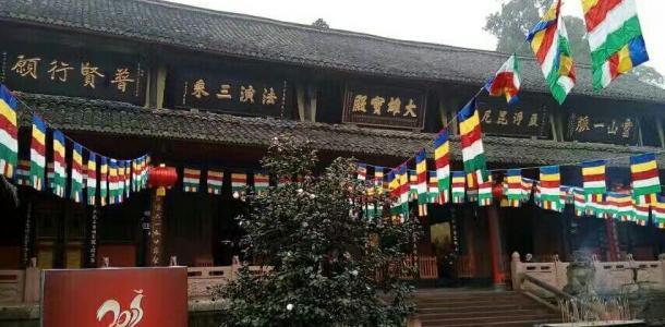 距离峨眉山山门不远的报国寺,始建于明朝万历年间,是进入山门的第一座寺庙,也是大部分游客游玩峨眉山山风景区的起点。寺庙山门上的“报国寺”匾额,出自清朝康熙皇帝之手,这里也是山中佛事活动的中心。