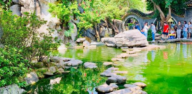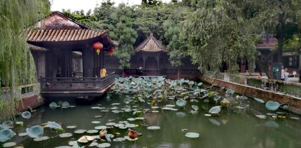 南海影视城的每个建筑都与池塘相连,形成处处是景的格局。池塘里养满了红鲤鱼和乌龟,很有趣味。不走寻常路的,也可绕着假山,池塘上石子路走上一走。园内也有展示介绍,就是假日很难找到解说员,只可慢慢欣赏墙上的木雕,园内的石雕