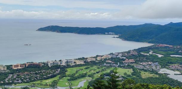 亚龙湾热带雨林公园的沧海亭能拍到整个亚龙湾,一定要买观光车步行耗时还很累